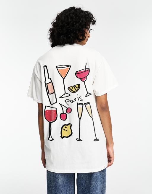 ASOS DESIGN - T-shirt oversize avec imprimé Paris vin et fromage - Blanc