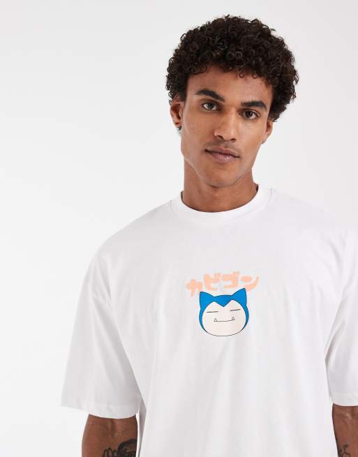 ASOS DESIGN - T-shirt oversize avec imprimé Pokémon Ronflex - Blanc