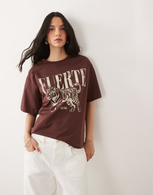 ASOS DESIGN - T-shirt oversize avec imprimé tigre - Chocolat