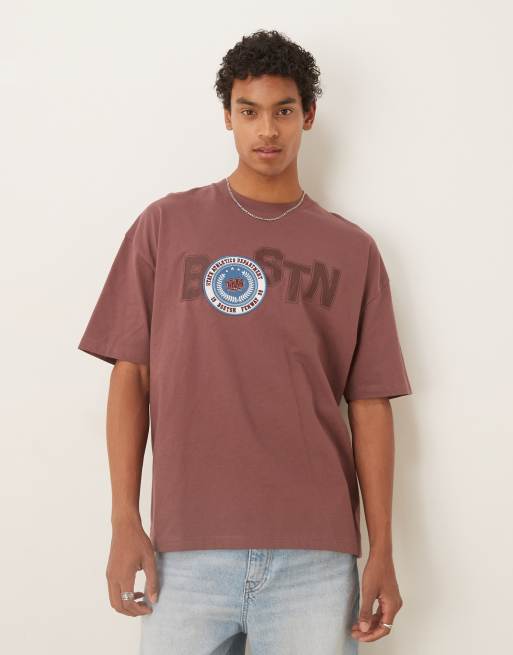 ASOS DESIGN - T-shirt oversize avec imprimé ville et écusson - Marron