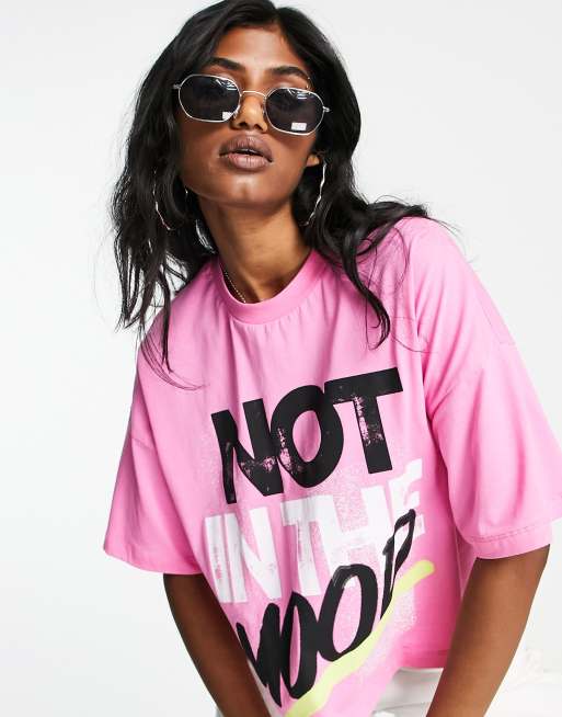 ASOS DESIGN - T-shirt oversize avec inscription « Not In The Mood » - Rose vif