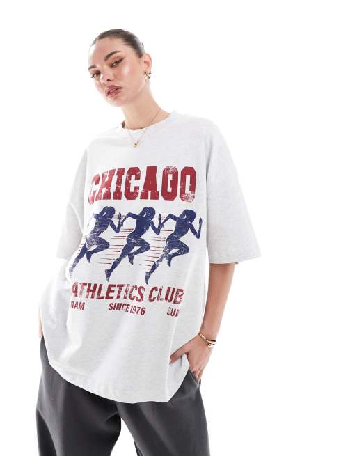 ASOS DESIGN - T-shirt oversize avec motif Chicago Athletics Club - Glace chiné