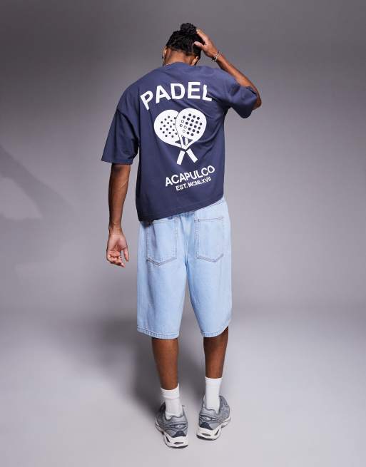 ASOS DESIGN - T-shirt oversize coupe carrée à imprimé padel - Bleu marine