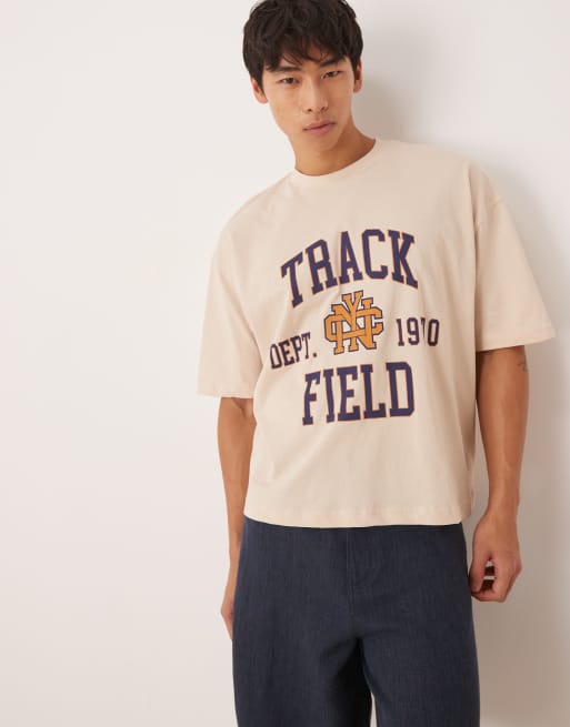 ASOS DESIGN - T-shirt oversize coupe carrée à motif style universitaire - Neutre