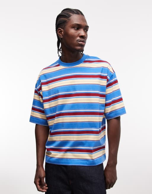 ASOS DESIGN - T-shirt oversize coupe carrée à rayures - Bleu.