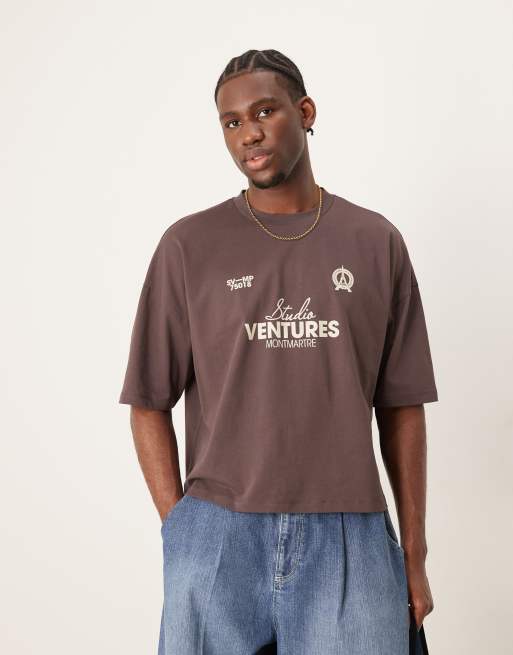 ASOS DESIGN - T-shirt oversize coupe carrée avec épaules tombantes et imprimé effet relief - Marron
