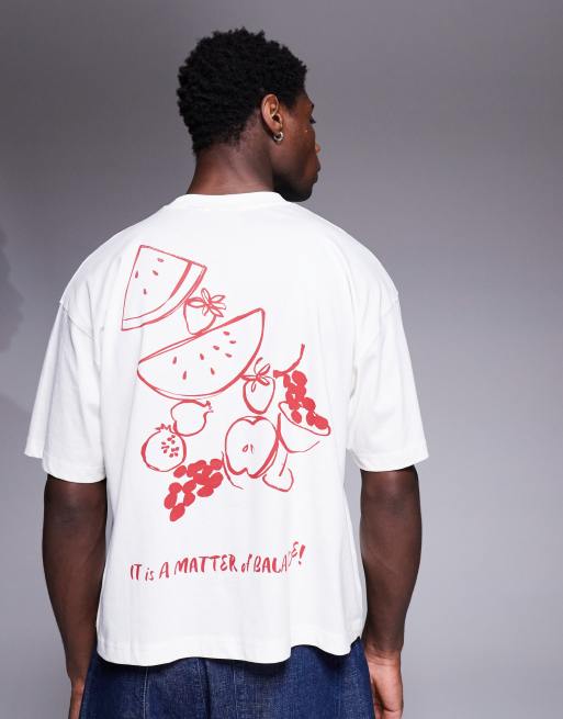 ASOS DESIGN - T-shirt oversize coupe carrée avec imprimé estival - Blanc cassé