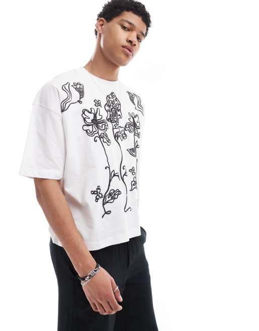 ASOS DESIGN - T-shirt oversize coupe carrée avec imprimé fleurs - Blanc