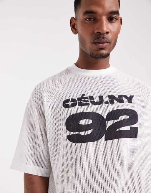 ASOS DESIGN - T-shirt oversize coupe carrée avec imprimé graphique à l'avant en tissu texturé - Blanc
