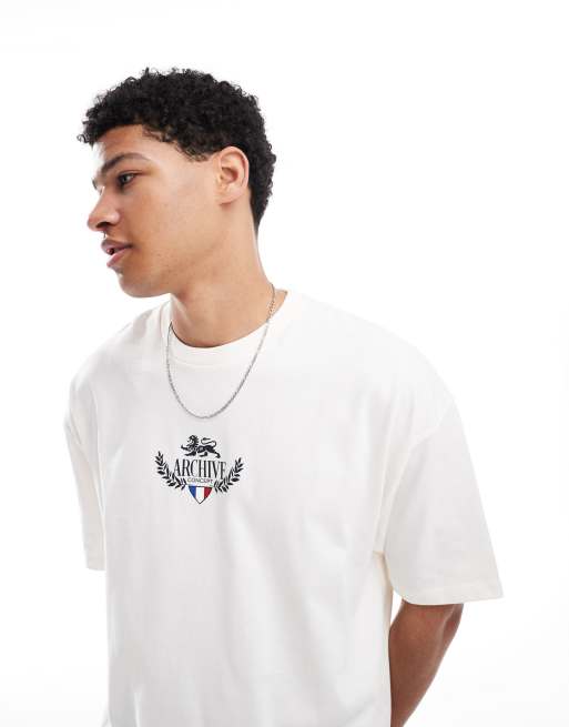 ASOS DESIGN - T-shirt oversize coupe carrée avec imprimé ville - Blanc cassé