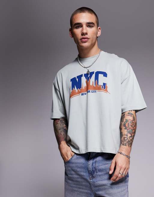 ASOS DESIGN - T-shirt oversize coupe carrée avec imprimé ville sur le devant - Gris clair