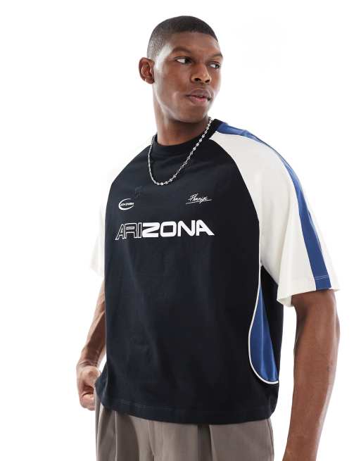 ASOS DESIGN - T-shirt oversize coupe carrée avec motifs sportifs et empiècements effet rapiécé - Noir