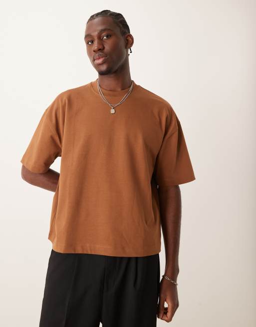 ASOS DESIGN - T-shirt oversize coupe carrée en tissu très épais - Marron