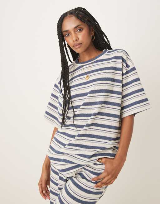 ASOS DESIGN - T-shirt oversize d'ensemble en maille - Rayures bleu marine