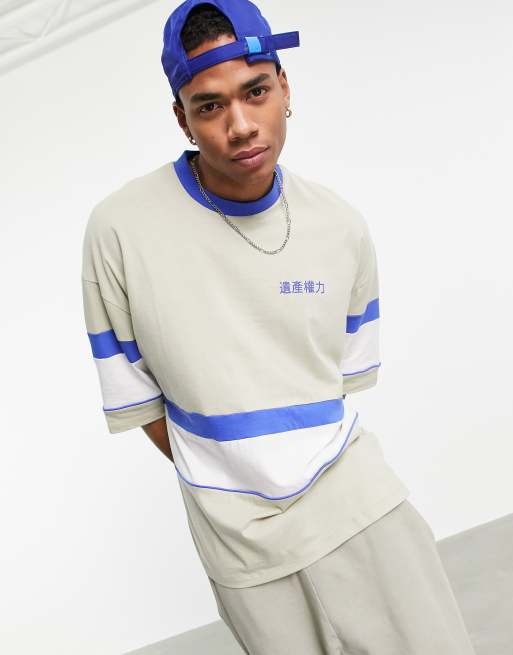 ASOS DESIGN - T-shirt oversize effet coupé-cousu à imprimé sur le devant - Kaki délavé