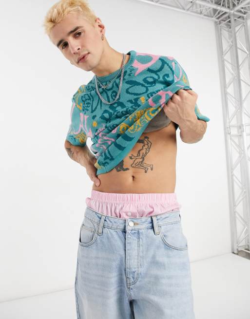ASOS DESIGN - T-shirt oversize en maille avec logo sur l'ensemble - Bleu sarcelle
