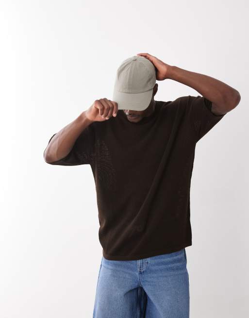 ASOS DESIGN - T-shirt oversize en maille pointelle - Marron