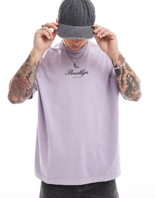 ASOS DESIGN - T-shirt oversize en tissu épais 220 g/m² avec imprimé Brooklyn sur l'avant - Lavande délavé