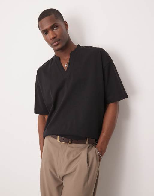 ASOS DESIGN - T-shirt oversize en tissu épais avec col cranté - Noir