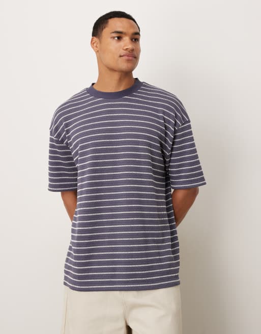 ASOS DESIGN - T-shirt oversize en tissu épais texturé à rayures - Bleu marine et blanc