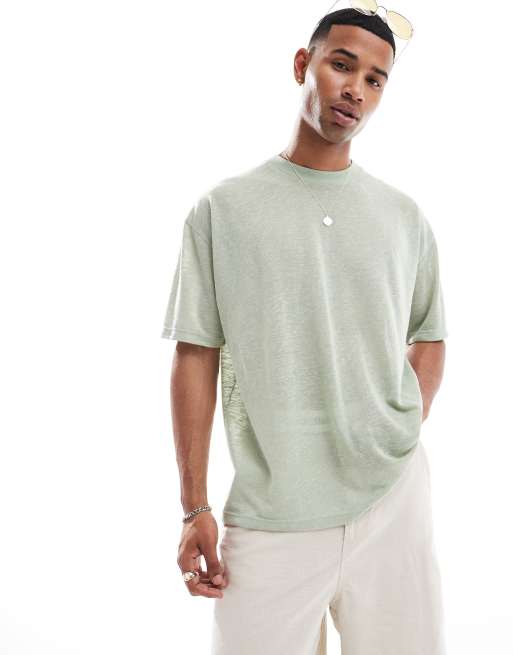 ASOS DESIGN - T-shirt oversize en tissu flammé - Sauge