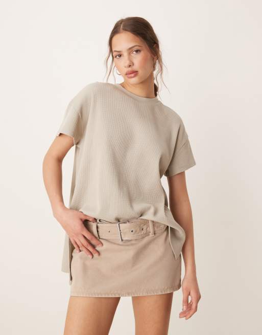 ASOS DESIGN - T-shirt oversize en tissu gaufré - Kaki