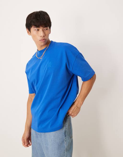 ASOS DESIGN - T-shirt oversize en tissu ultra épais avec épaules tombantes - Bleu