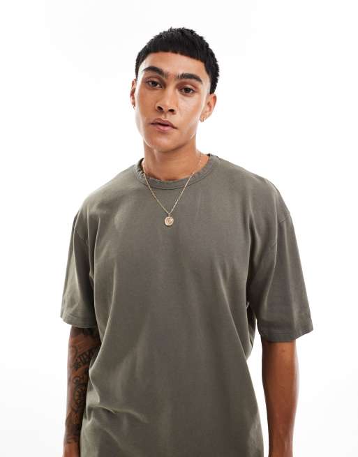 ASOS DESIGN - T-shirt oversize épais 220 g/m² imprimé artistique au dos - Marron délavé