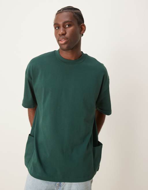 ASOS DESIGN - T-shirt oversize épais avec poche - Vert foncé