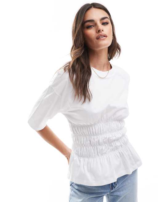 ASOS DESIGN - T-shirt oversize froncé à la taille - Blanc