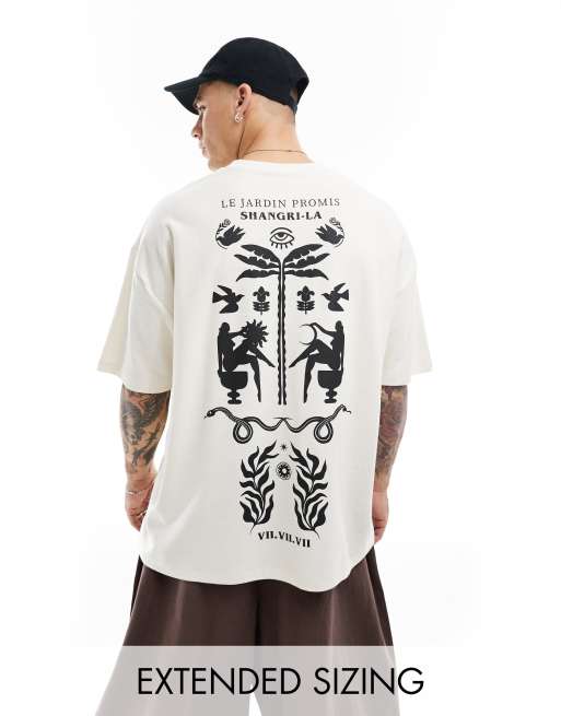 ASOS DESIGN - T-shirt oversize texturé avec imprimé céleste au dos - Blanc cassé