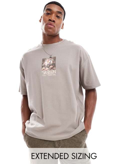 ASOS DESIGN - T-shirt oversize texturé avec imprimé fleurs sur l'avant - Marron