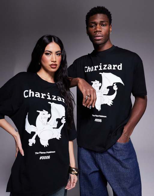 ASOS DESIGN - T-shirt oversize unisexe à imprimé Pokémon Charizard - Noir