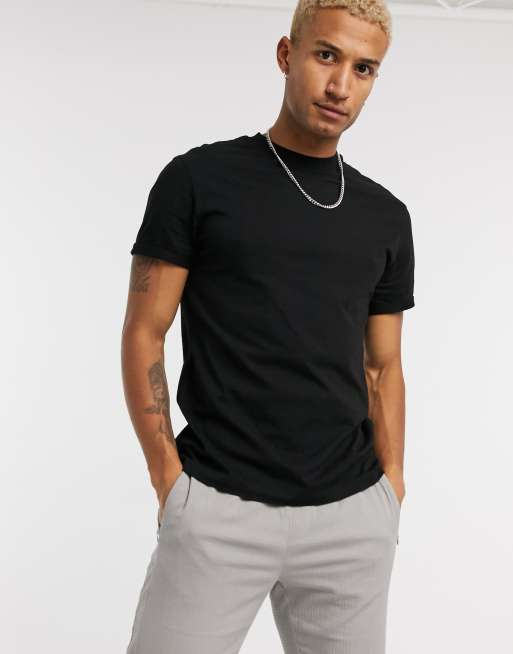 ASOS DESIGN - T-shirt ras de cou à manches retroussées - Noir