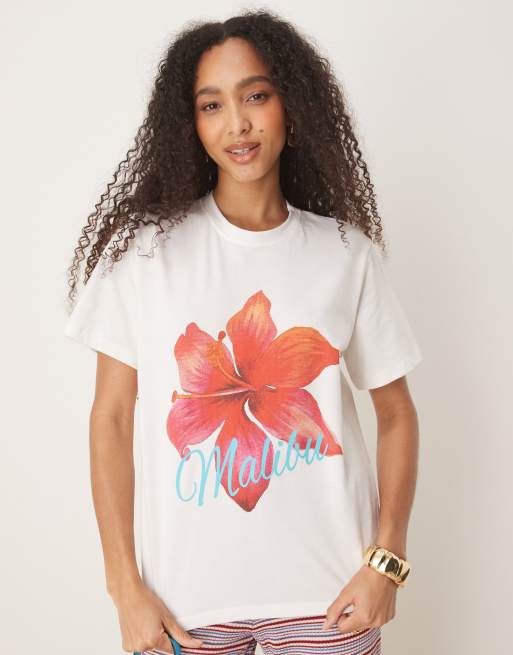 ASOS DESIGN - T-shirt standard à imprimé Malibu - Blanc