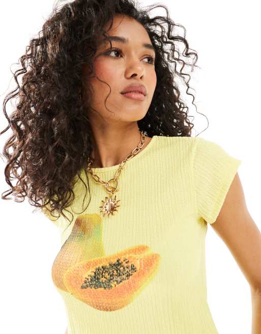 ASOS DESIGN - T-shirt texturé effet rétréci à imprimé papaye - Citron