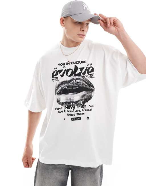 ASOS DESIGN - T-shirt ultra oversize avec imprimé lèvres et texte - Blanc