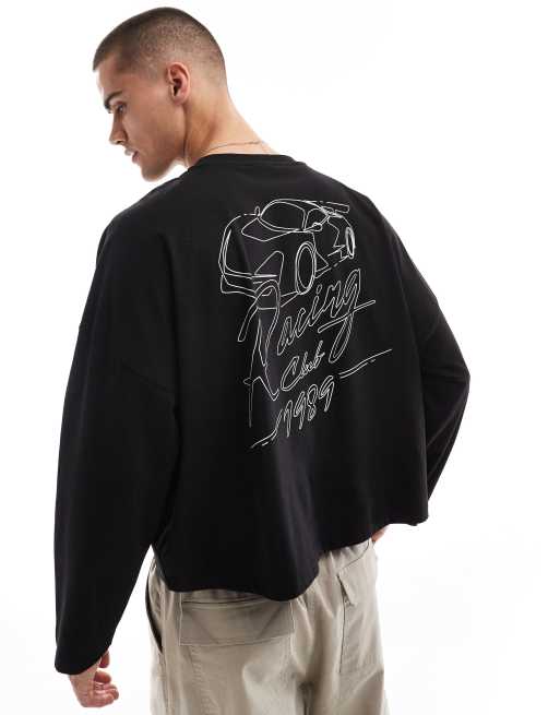 ASOS DESIGN - T-shirt ultra oversize coupe carrée à manches longues avec imprimé voiture au dos - Noir