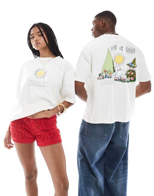 ASOS DESIGN - T-shirt unisexe oversize à imprimés Moomin - Blanc
