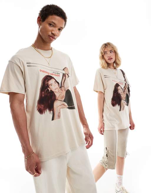 ASOS DESIGN - T-shirt unisexe oversize avec imprimé Dua Lipa sous licence à l'avant - Blanc cassé