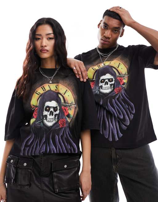 ASOS DESIGN - T-shirt unisexe oversize avec imprimé Guns N Roses sous licence et faucheuse - Noir