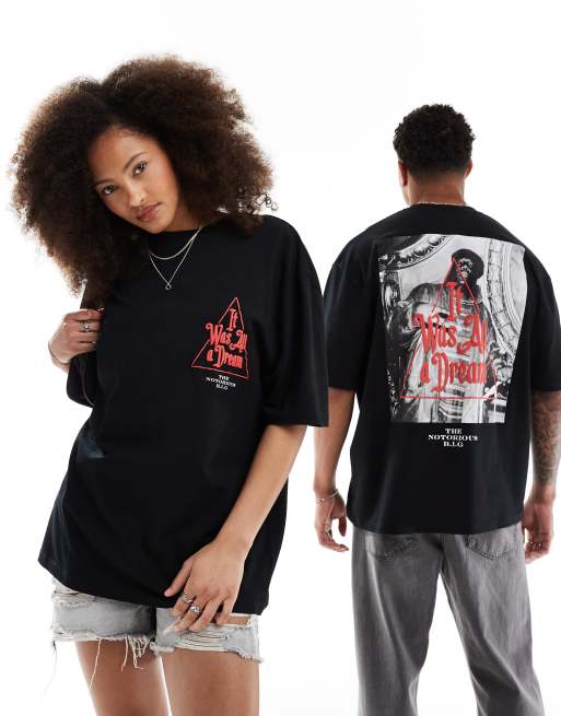 ASOS DESIGN - T-shirt unisexe oversize avec imprimés Biggie Smalls sous licence en relief - Noir