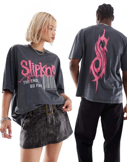 ASOS DESIGN - T-shirt unisexe oversize avec imprimés groupe Slipknot sous licence - Noir délavé