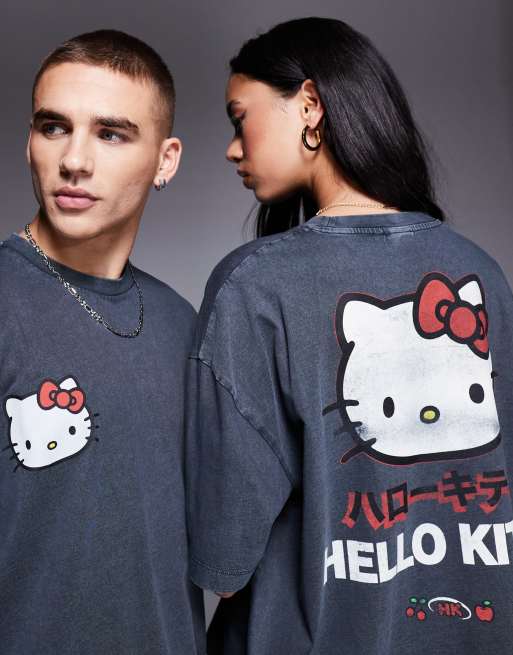ASOS DESIGN - T-shirt unisexe oversize avec imprimés Hello Kitty - Noir délavé