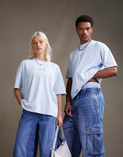 ASOS DESIGN - T-shirt unisexe oversize avec imprimés Mickey et Minnie Mouse - Bleu délavé