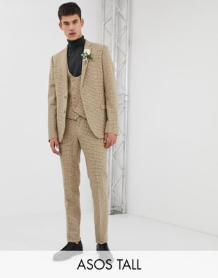 ASOS DESIGN Tall - Costume de mariage slim à petits carreaux - Taupe