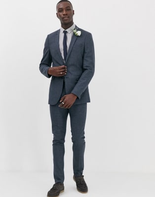 ASOS DESIGN Tall - Costume slim en laine mélangée à micro motif pied-de-poule - Bleu
