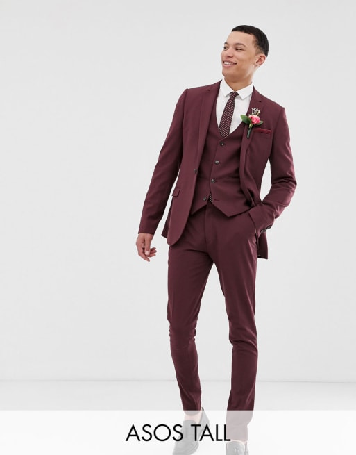 ASOS DESIGN Tall - Costume ultra ajusté - Bordeaux