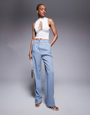 ASOS DESIGN Tall - Pantalon ajusté ample avec boutons dorés - Bleu