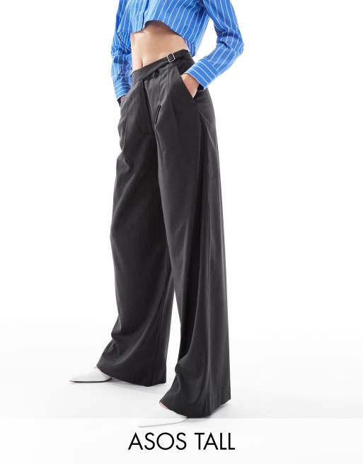 ASOS DESIGN - Tall - Pantalon ample et ajusté avec rayures et boucle asymétrique - Gris